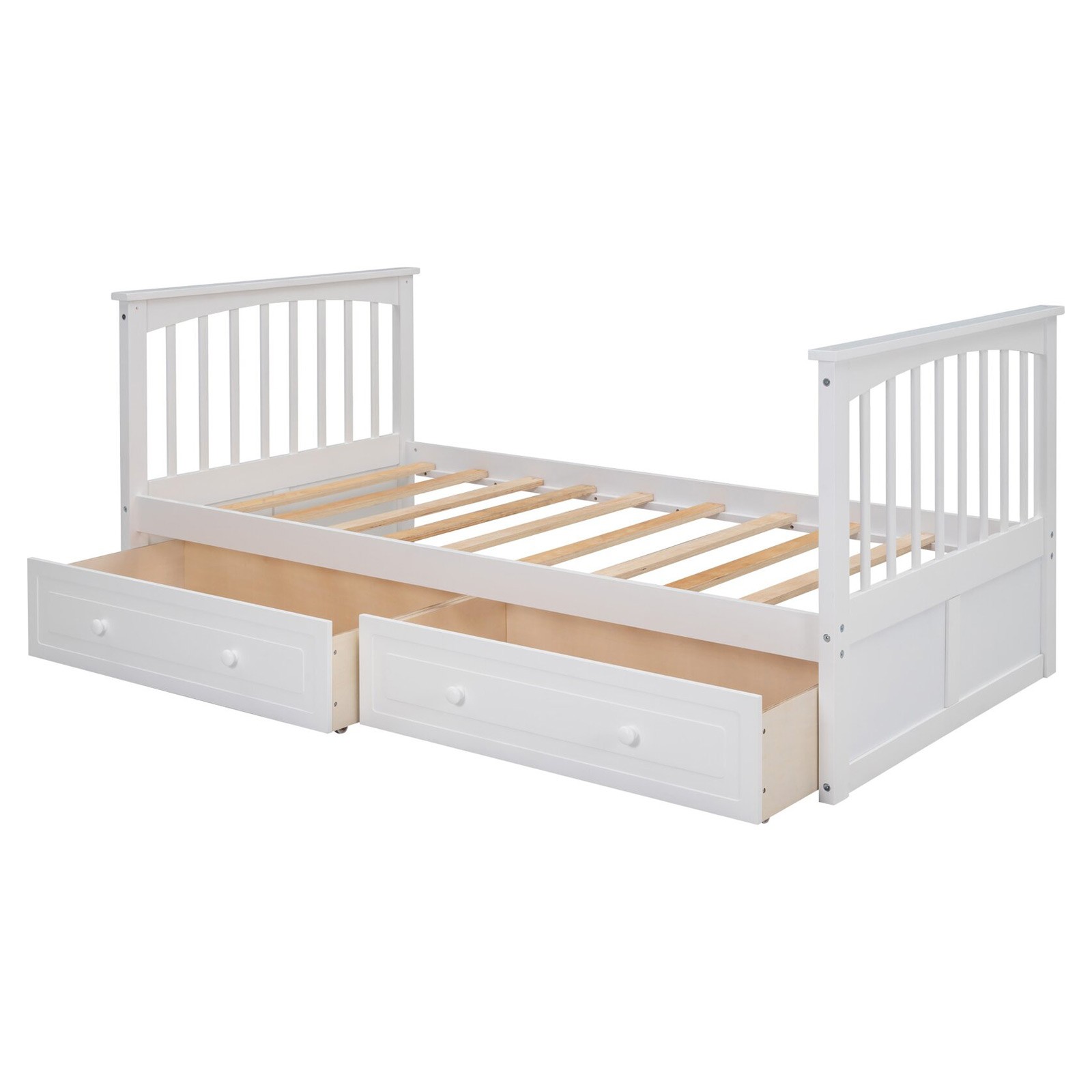 İki çekmeceli bu ranza, harika bir saklama işlevi sağlar. Çekmeceler, çekmecelerin içeri ve dışarı yuvarlanmasını kolaylaştıran tekerlekler ve kulplarla donatılmıştır. Ayrıca biri iki çekmeceli, biri geniş yatak altı alanı olan iki ayrı yatağa dönüştürülebilir.