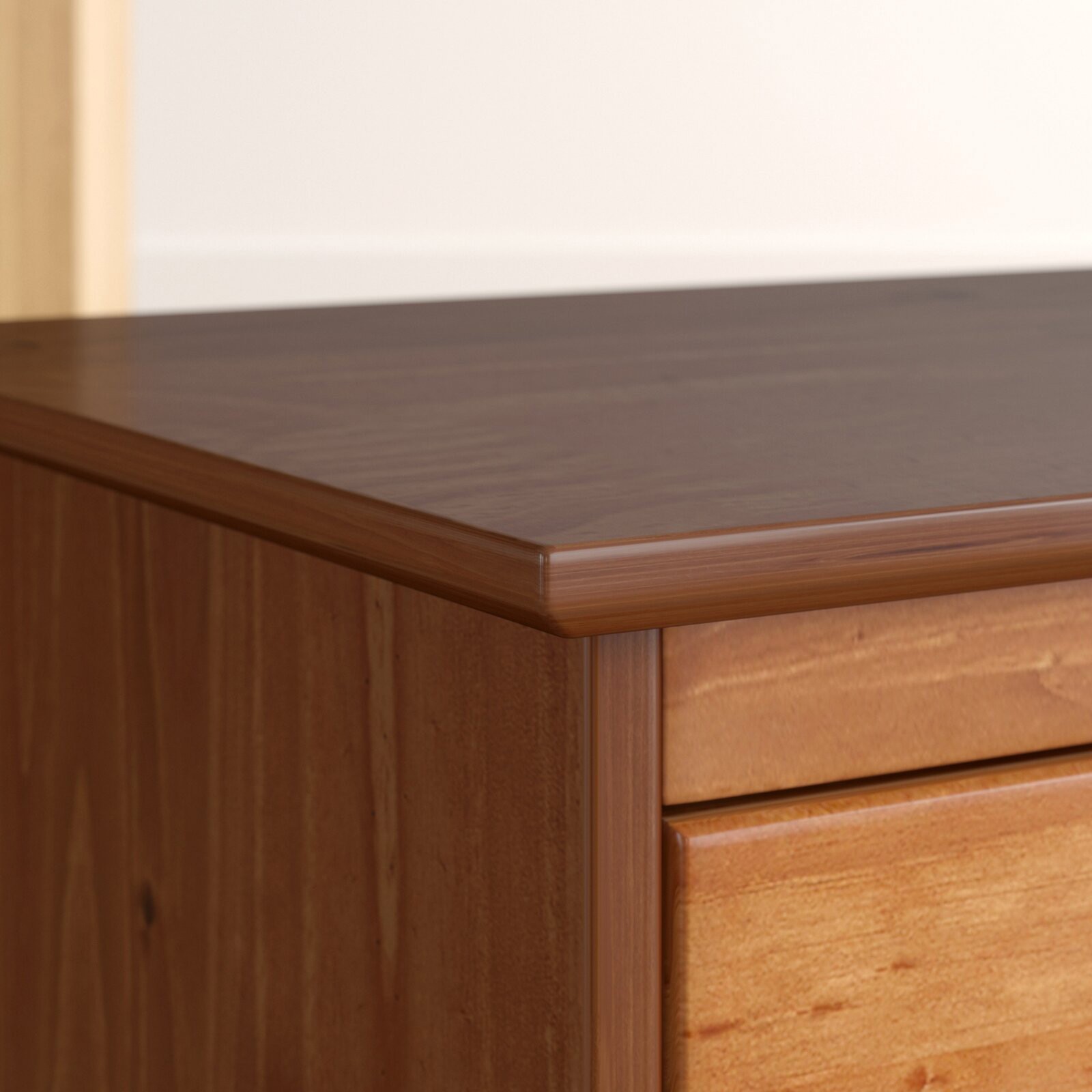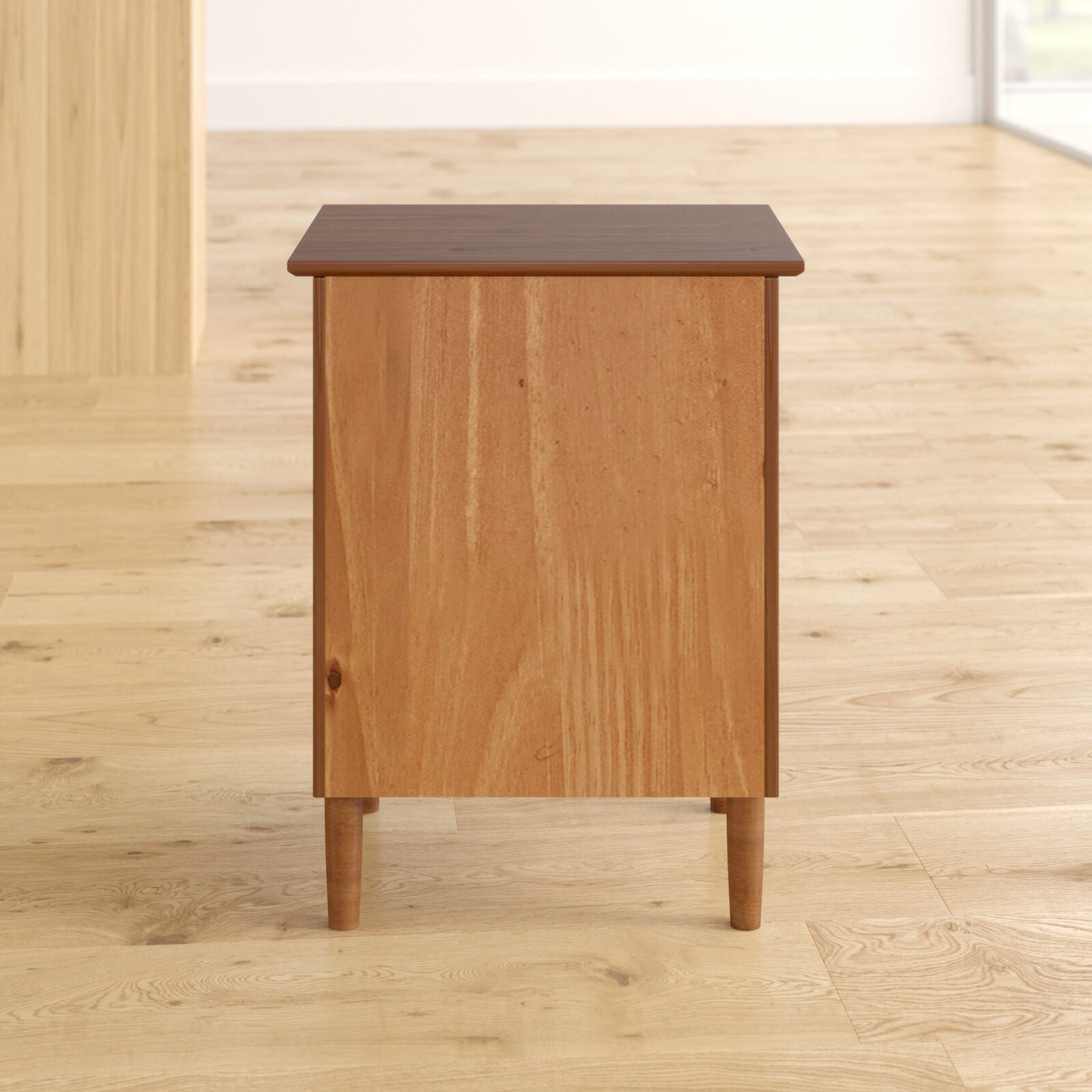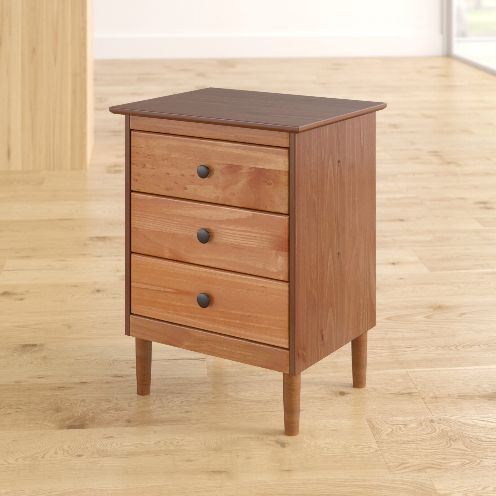 Yüzyıl ortası modern tasarım ve geleneksel tarz, bu üç çekmeceli komodinde kusursuz bir şekilde bir araya geliyor. Çam ve işlenmiş ahşaptan hazırlanmış bu komidin, basit pervazlar ve dört konik dübel ayağı ile kutu gibi bir siluete sahiptir. Siyah düğmelere sahip üç çekmece, tüm başucu temel ihtiyaçlarınız için gözden uzak bir saklama alanı sunar.
